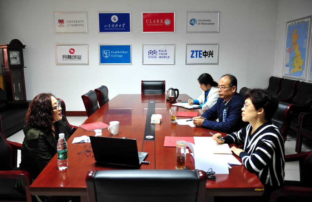 10月12日,英国伦敦布鲁内尔大学国际合作总监Monica Yang女士受邀访问济南校区。济南校区管委会副主任樊铭渠教授会见客人,合作办学办公室相关人员陪同会见。