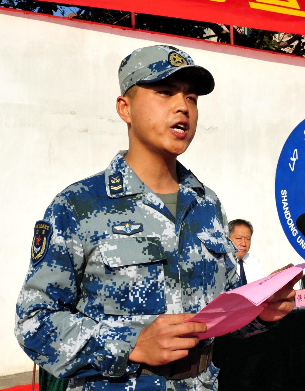 军训教官高明坤发言