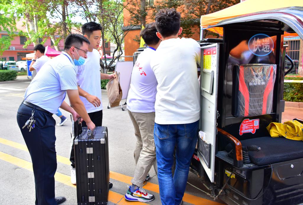 经过一天的紧张与忙碌,2020级迎新报到工作基本完成。随后,济南校区将组织开展新生军训和一系列丰富的新生入学教育活动,帮助新同学们走好大学第一步,尽快适应大学的学习和生活。愿新生们秉承科大人“惟真求新”的校训,在科大放飞梦想,扬帆远航!(摄影:孙雪琳)