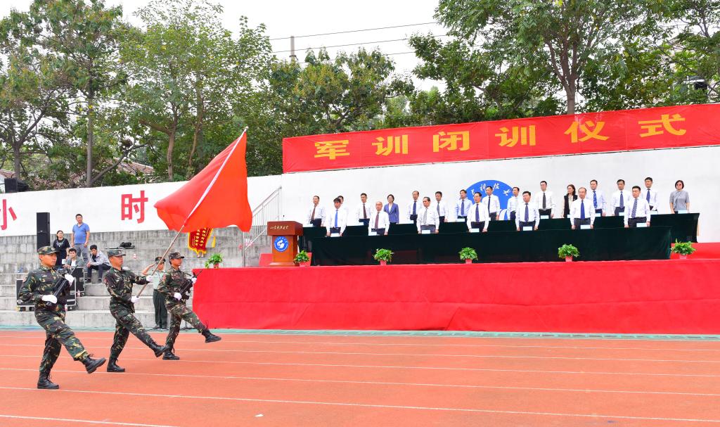 军歌嘹亮响长空,步履铿锵踏征程。9月29日下午3:00,济南校区在运动场隆重举行2020级新生军训闭训仪式。副校长兼济南校区党工委书记、管委主任孙鹤汀,校区两委委员,各部门单位负责人出席仪式并在主席台就坐。校区学生工作干部、军训教官及2020级全体新生参加了闭训仪式。仪式由校区学团工作部副主任赵长青主持。