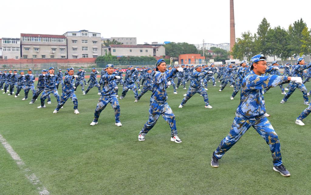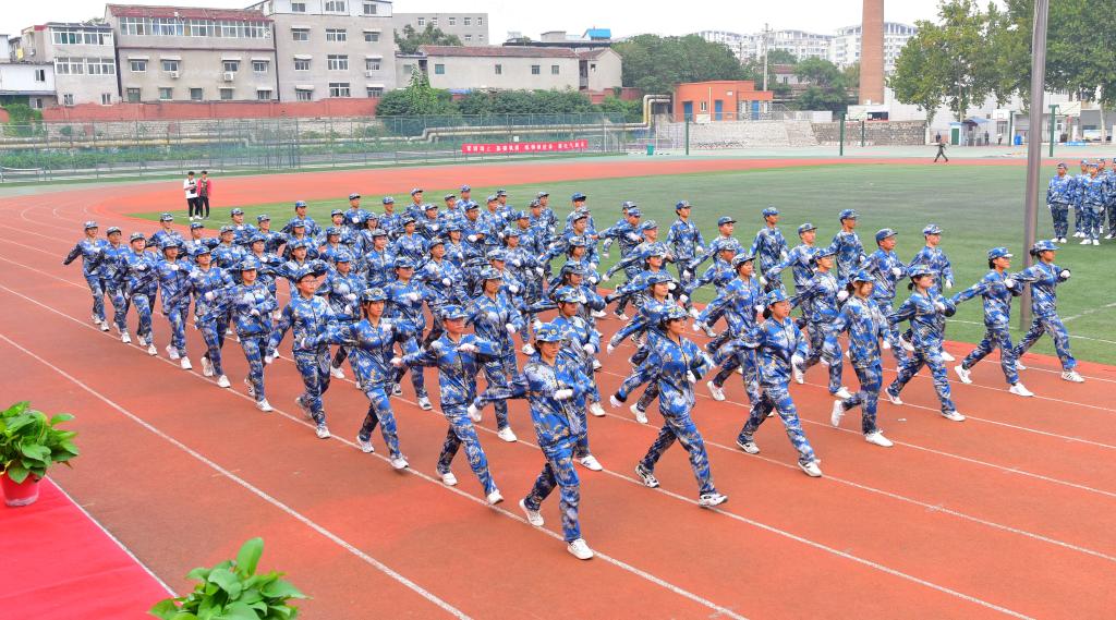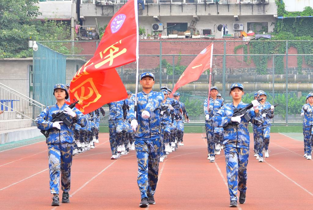 本次军训活动历时12天,除了开展队列训练、国防教育、内务整理等军训科目外,还结合入学教育开展了健康查体、安全教育与消防知识培训、消防应急疏散及灭火演练、文明礼仪宣讲等活动。(摄影:孙雪琳)