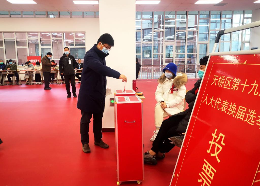 上午8时,工作人员准时到岗做好各项准备工作,8:30天桥区堤口路地区第三选区投票站正式开始投票选举。在工作人员和全体选民的密切配合下,投票选举各项工作有序开展,处处洋溢着民主、和谐的气氛。选民们以饱满的政治热情、高度的责任感,积极行使宪法和选举法赋予的民主权利,有序在选区投票。投票现场严格落实防疫举措,做到选举和疫情防控“两手抓”“两不误”。