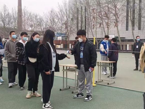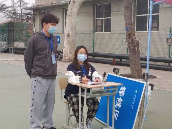 为确保各项防控工作的有序开展,济南校区广泛动员各部门各单位所有力量,迅速组成一支由56名教职员工和401名学生组成的疫情防控志愿者队伍。自3月12日校区进行全员核酸检测和每日核酸抽检以来,志愿者们经过培训迅即投入到各个岗位中。在核酸检测现场,志愿者们分工合作,协助医护人员进行信息登记、体温测量、流程指引、人员疏导等工作,确保每天核酸检测工作有条不紊。此外,志愿者们还积极参与到防外卖进校园督查、餐厅就餐秩序维护、为宿舍隔离同学送饭等工作中,哪里有需要哪里就会有志愿者们忙碌的身影。