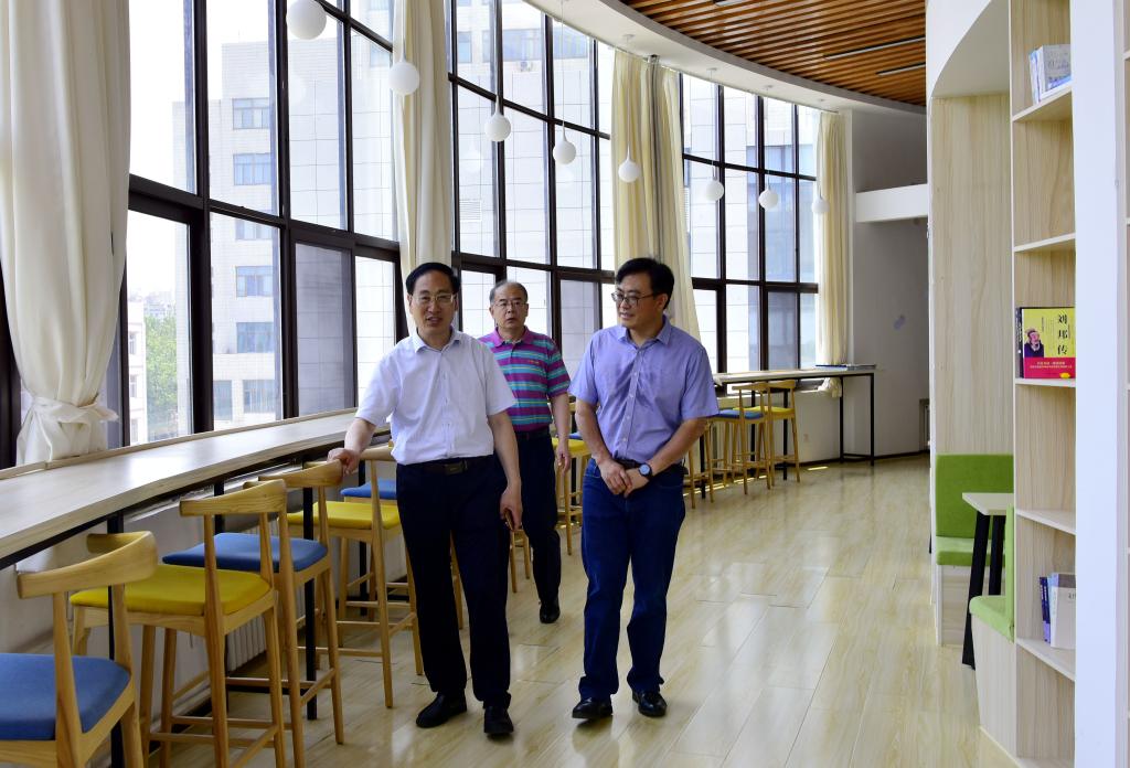 会谈结束后,张建实地察看了济南校区校园环境、智慧教室、艺体楼、餐厅、海外学习中心等。