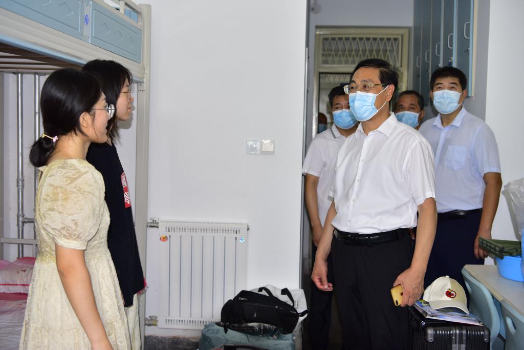 副校长兼济南校区党委书记、管委主任孙鹤汀,校区两委成员和相关部门负责人到新生报到现场了解报到情况,慰问工作人员和学生志愿者,并到学生宿舍看望新生。孙鹤汀对迎新工作人员和志愿者的辛苦付出表示感谢,对院系为新生精心设计的“礼物”表示赞赏。在同远道而来的新生交流时,孙鹤汀亲切关心他们的入校感受和生活情况,勉励他们以校为家,安心学习,快乐生活,全面成长。