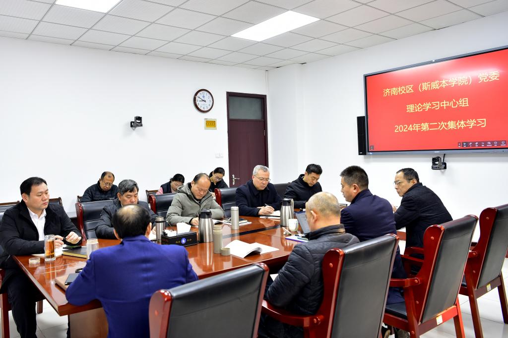 3月7日,济南校区(斯威本学院)党委理论学习中心组开展2024年第二次集体学习。校区(学院)党委常务副书记梁赛江主持学习,校区(学院)党委理论学习中心组成员参加学习。