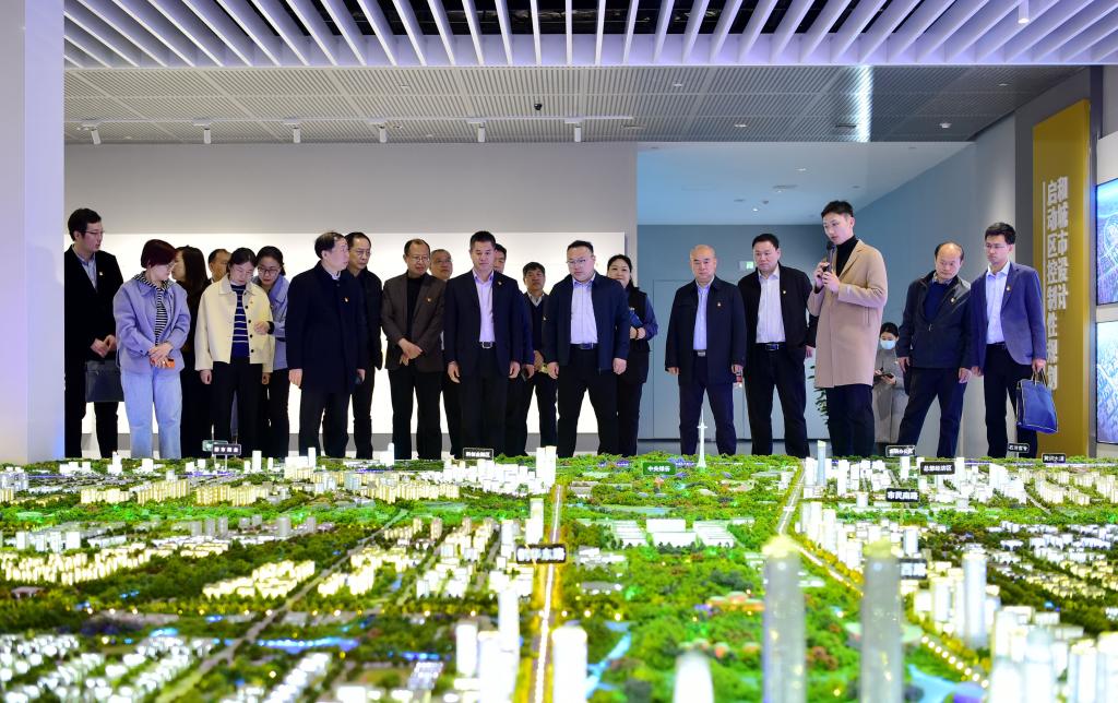 中心组一行先后参观了济南先行投资集团、济南新旧动能转换起步区城市展厅、中科D2、B2地块、人才公寓及配套餐厅,详细了解了起步区规划建设发展情况,深刻感受新区现代化规划布局,优越的地理位置和良好的营商环境以及在智慧城市、配套设施、交通设施建设方面的规划理念。