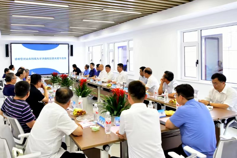梁赛江、郭加书介绍了济南校区“三大功能区”发展定位、办学特色、专业设置、科研成果等情况。梁赛江着重介绍了“嵙友”泉城会客厅的建设历程及平台功能。他表示,校友是学校发展重要的支撑力量,是学校宝贵的财富资源,济南校区将以“嵙友”泉城会客厅建设为桥梁纽带,进一步密切母校与校友之间的交流与合作,互相支持、共同发展,为建设“强新优富美高”新时代社会主义现代化强省会贡献力量。