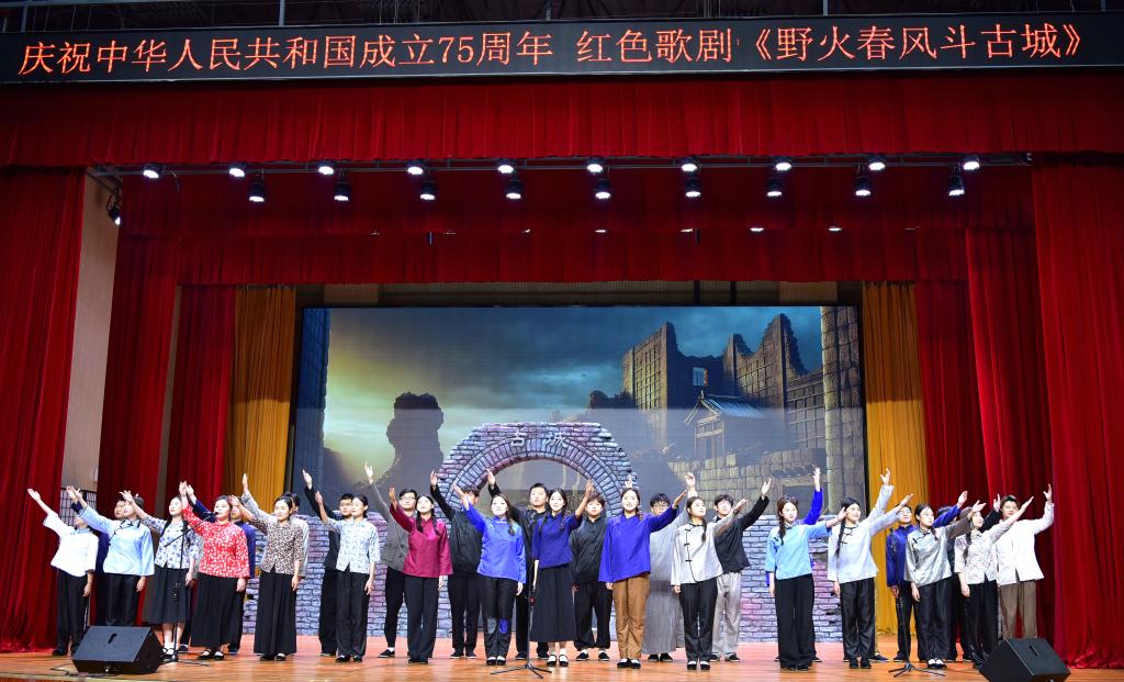 9月12日,为庆祝中华人民共和国成立75周年,由济南校区党委主办、艺术学院党委承办的红色歌剧《野火春风斗古城》在艺体楼二楼隆重演出。校区两委成员、各部门负责人、师生党员代表以及2024级全体新生共同观看了演出。