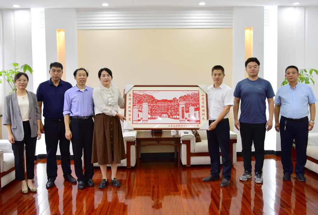 崔义豪、李薛甲一行对我校大学生在2024年暑期返家乡社会实践中所做出的贡献表示感谢,希望进一步加强交流,深化合作,共赢发展,并向校区捐赠剪纸作品。
