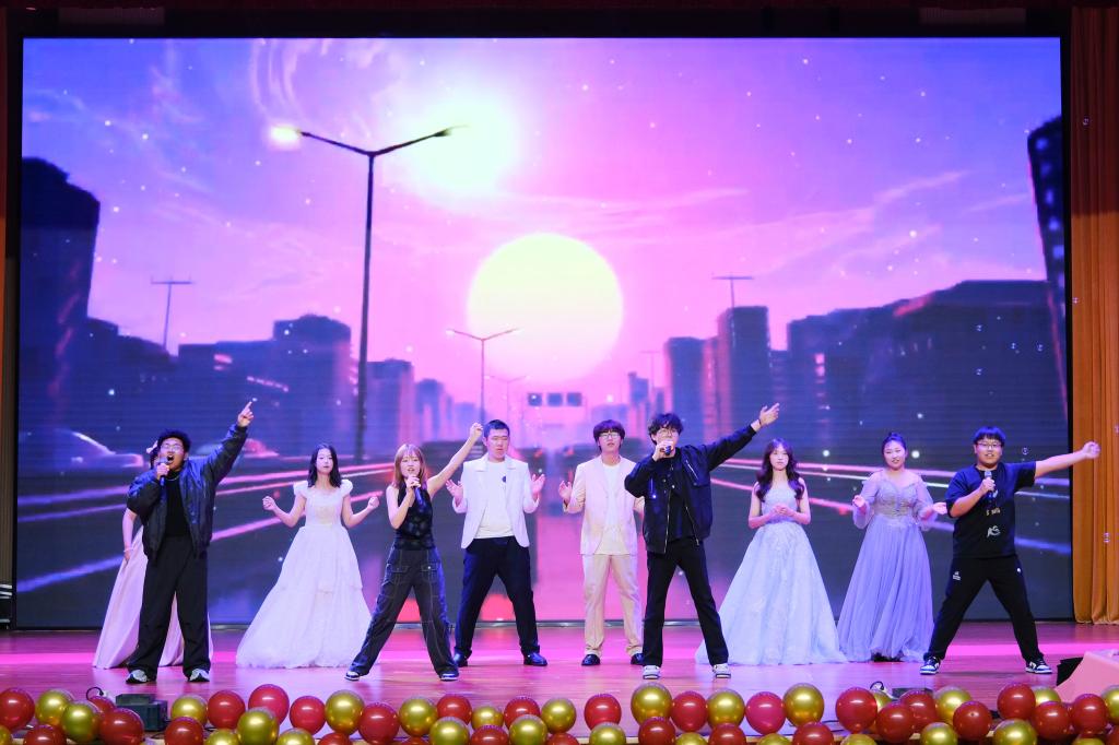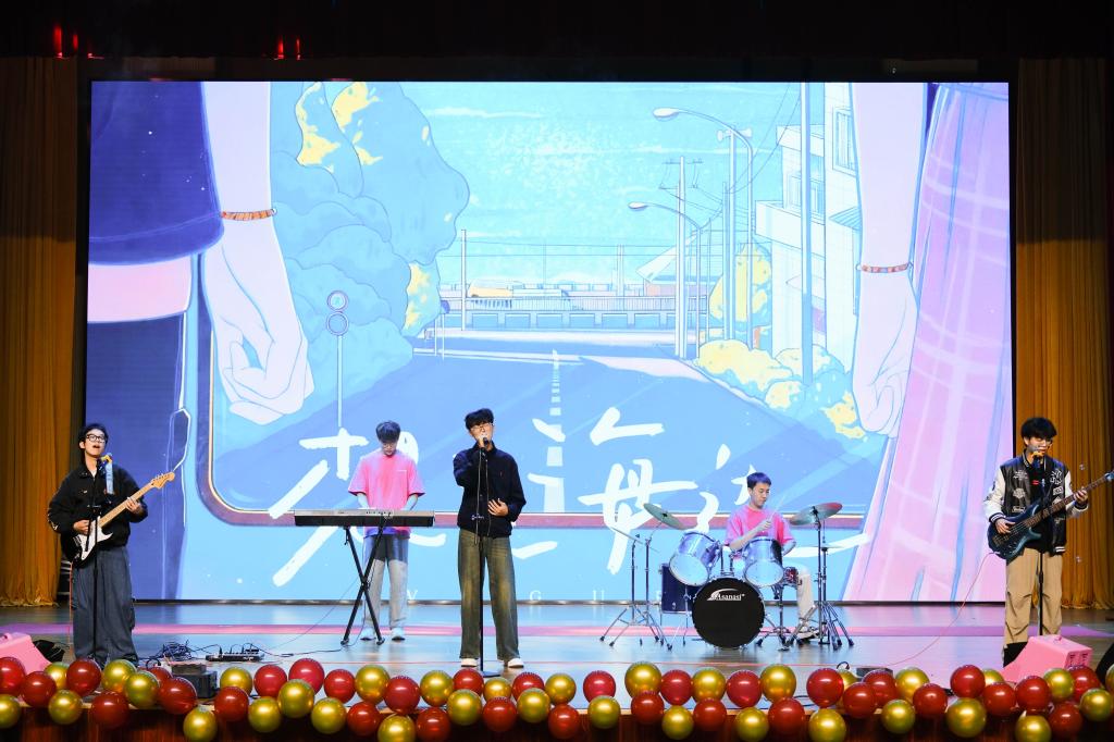 晚会以“门外有只胖橘”乐队带来的开场歌曲瞬间点燃全场热情,强劲的节奏与飞扬的歌声,迅速将观众带入晚会的热烈氛围。整场晚会紧扣主题,分“山海相逢 惟真同心”“弦歌不辍 奋楫争先”“乘风破浪 志泽四方”三个篇章依次展开。13个节目涵盖了歌曲、舞蹈、情景剧、武术、朗诵、器乐、走秀、配音等多元艺术形式,展示了校区学生的青春活力与艺术气息。