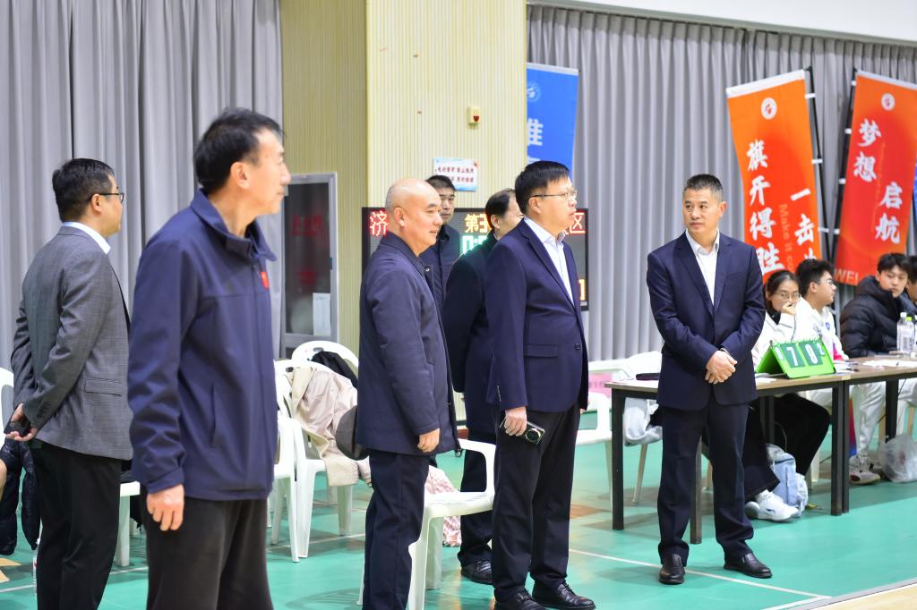 校党委书记王君松亲临比赛现场,观看比赛并与运动员们亲切交流,对他们的竞技水平和拼搏精神给予了高度赞扬,并对济南校区组委会的筹备和组织工作表示充分肯定。