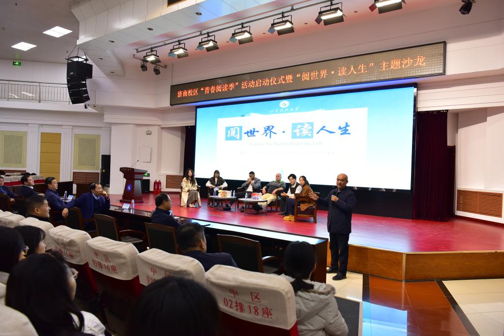 为进一步营造浓厚的校园阅读氛围,激发师生的阅读热情,搭建良好阅读平台,10月28日,济南校区“青春阅读季”活动启动仪式暨“阅世界·读人生”主题沙龙在图书馆报告厅举行。活动由校区党委委员兼党政办公室主任孙国强主持。