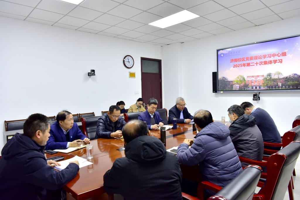 12月11日,济南校区党委理论学习中心组开展2025年第二十次集体学习。校区党委书记梁赛江主持学习,校区党委理论学习中心组成员参加学习。