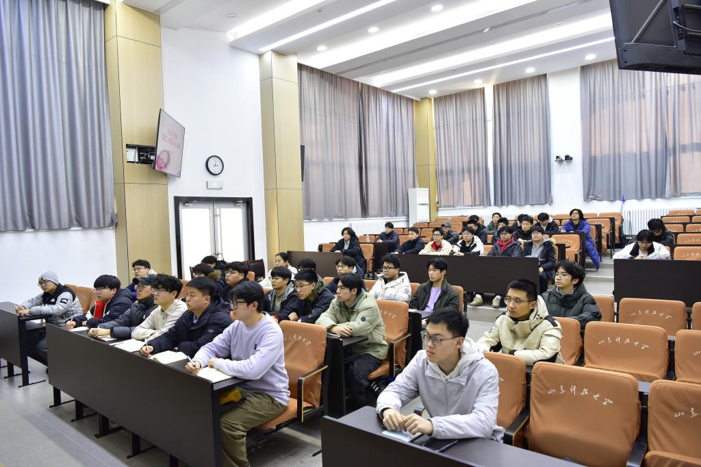 宣讲会上,梁赛江系统解读了党的二十届四中全会的重大意义、核心要义和实践要求,精准阐释了“十五五”时期在基本实现社会主义现代化进程中承前启后的重要地位。他重点围绕全会提出的“加快高水平科技自立自强,引领发展新质生产力”“建设现代化产业体系,巩固壮大实体经济根基”等重要部署进行宣讲。梁赛江指出,机械电子工程作为交叉融合学科,是支撑智能制造、高端装备制造等战略性新兴产业发展的核心学科,当前我国在高精度电子装备、智能控制等领域的发展需求,为专业学子提供了广阔的施展空间,这既是社会发展赋予的时代机遇,也是青年一代肩负的责任使命。
