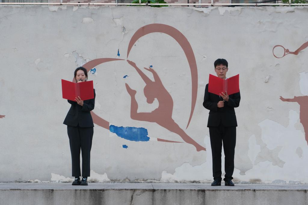 升旗仪式后,学生代表孙萌喆与于鑫民以对话形式展开主题演讲《你在纪念什么》。他们指出,我们以赤子之心升起这面旗帜,庆祝中华人民共和国成立76周年,更应铭记80年前那场血与火铸就的胜利,深思 “纪念” 背后的历史重量与精神传承。他们从抗战胜利80周年的历史纵深切入,通过上海南站的轰炸、南京大屠杀的惨痛记忆等鲜活历史片段,告诉大家今日和平与繁荣的来之不易。他们倡议,在庆祝新中国成立76周年的时刻,希望青年学子奋发有为,将抗战精神转化为建设祖国的实际行动。这场演讲不仅是一次历史的回望,更是一次对新时代青年的精神洗礼,激励大家珍惜当下,以奋斗姿态续写民族复兴的新篇章。(摄影:闫小树)