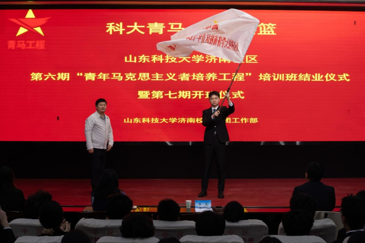 校区团委委员王龙为第六期“青马工程”培训班授旗。校区团委学生兼职副书记赵鹏彦宣读了《关于表彰第六期“青年马克思主义者培养工程”优秀学员的决定》。2025届校区学生会执行主席徐乐布置第七期“青马工程”培训班工作安排。与会老师为第六期“青马工程”优秀学员颁奖。优秀学员代表江芃菲进行发言。