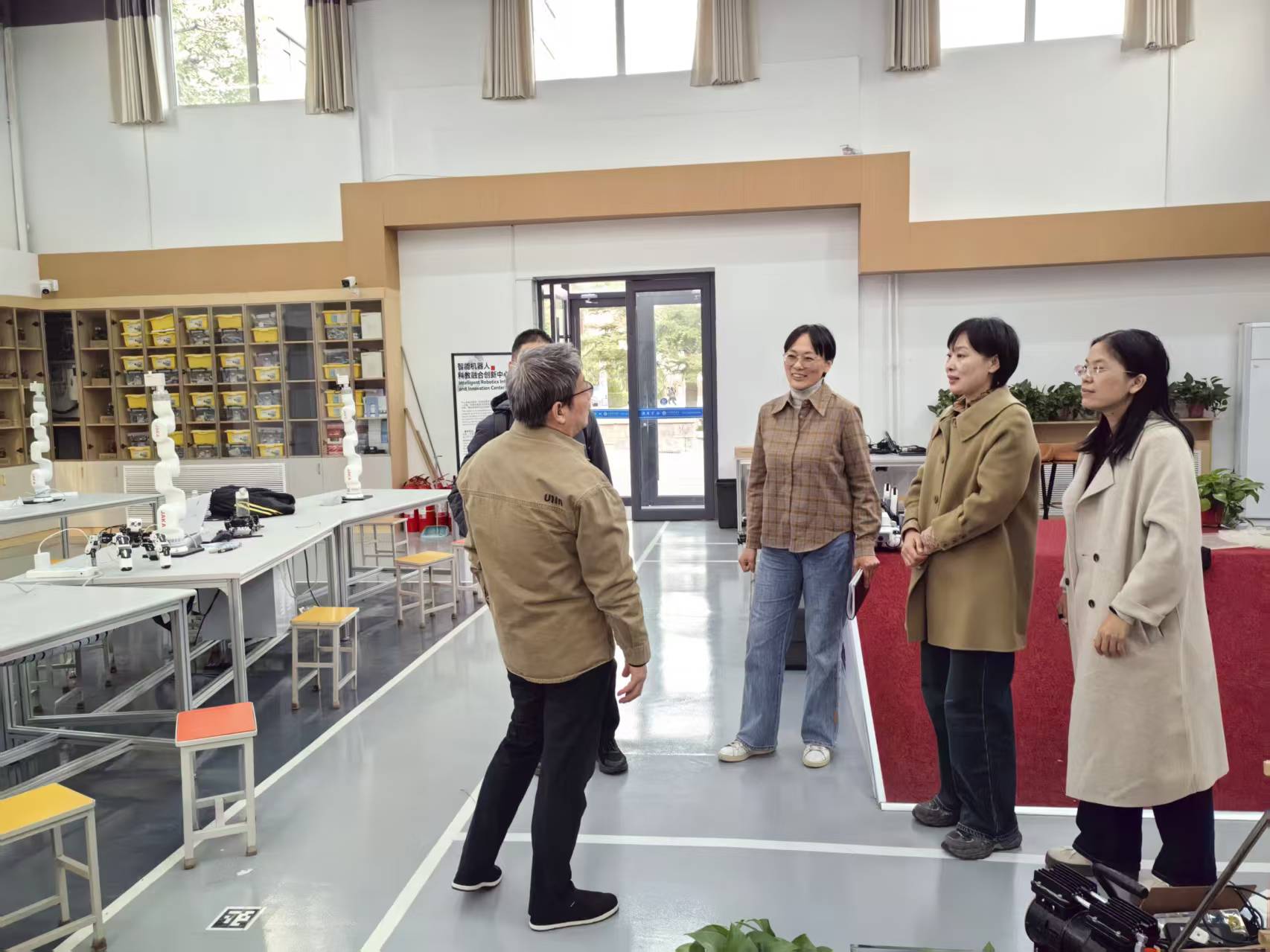 座谈会后,与会人员实地参观了模拟电子实验室、智能机器人科教融合创新中心等实践场所。