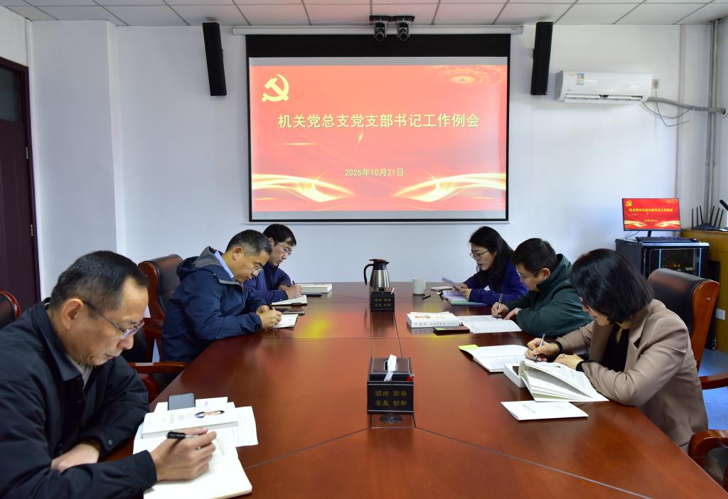 10月21日,机关党总支召开党支部书记工作例会。机关党总支书记仉兴泉主持会议,全体党支部书记参加。