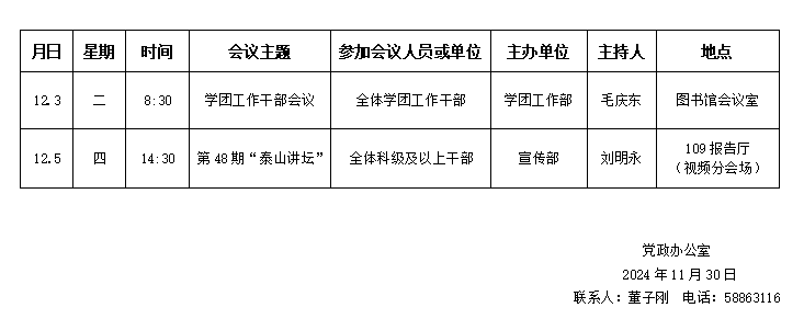 济南校区(斯威本学院)第十四周会议安排